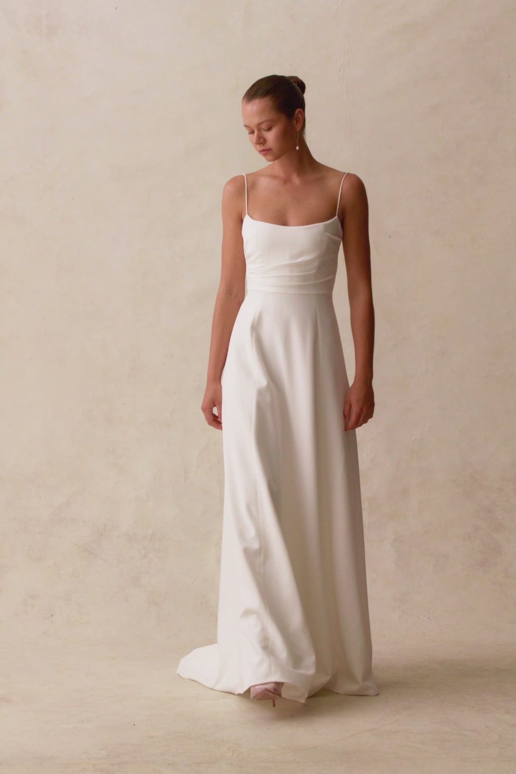 A perfect combination of structure and effortlessness, the Arlington Gown is made for the timeless bride. This style features thin straps that drop down into a low back, delicate draping across the bodice of the gown, and an internal corset that offers support through the bust.